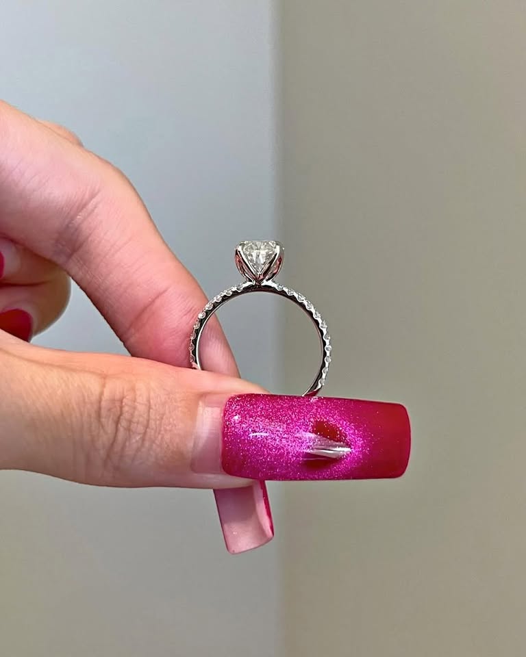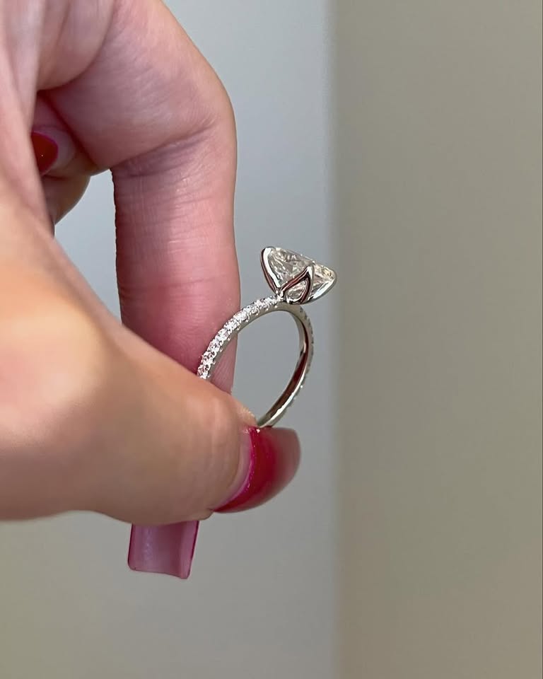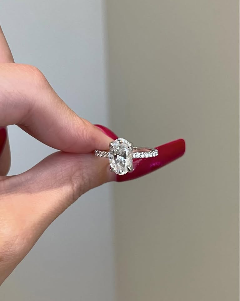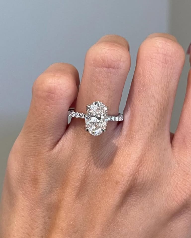 2.75ct Brilliant Oval Moissanite Tulip Setting Pavé Band Engagement Ring