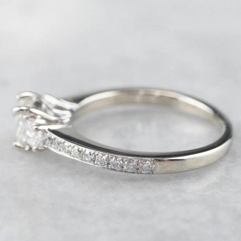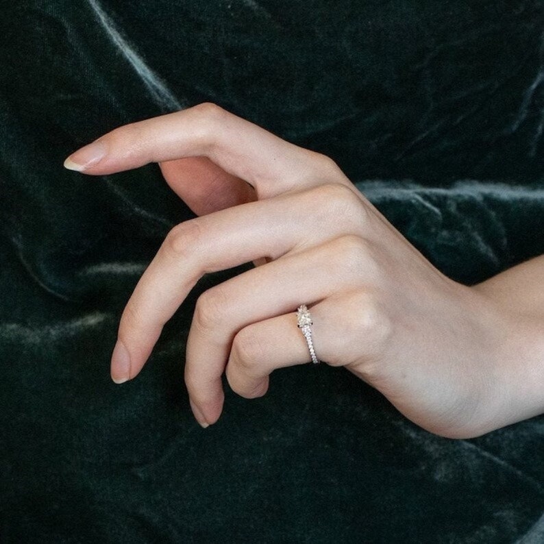 Crafted with precision and designed for modern elegance, the sleek band is adorned with sparkling accent stones that enhance the center diamondsโ fire and brilliance. Whether chosen as an engagement ring, anniversary gift, or statement piece, this ring blends sophistication with everyday wearability.